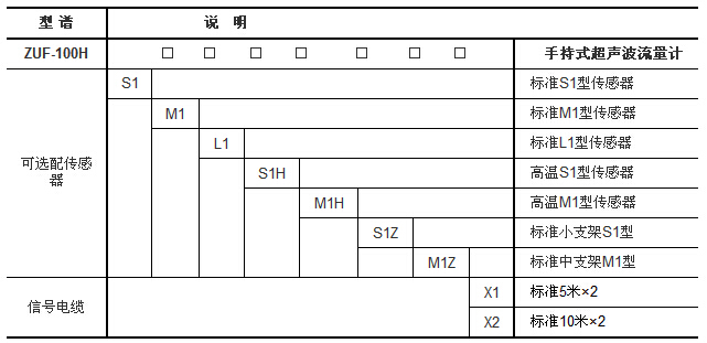 解釋:手持式超聲波流量計:標配標準M1型傳感器、選配標準S1型傳感器,信號電纜5米×2。