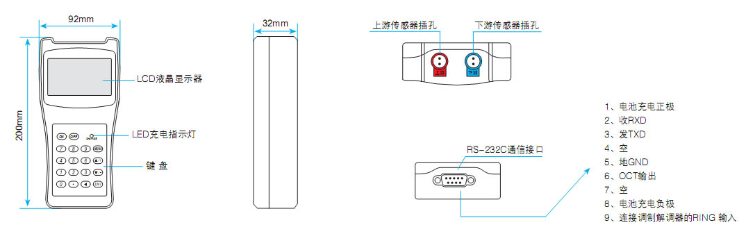 RS-232,同時兼容富士的超聲波流量計,也可應用戶的要求兼容其它產品; |